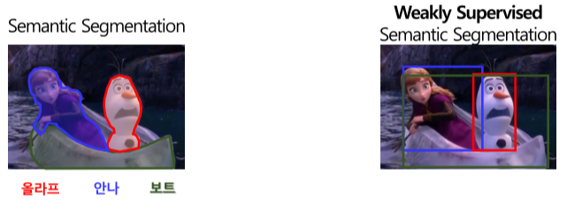 이러한 label 방법 중에 가장 얻기 쉬운 방법이 image-level label이면서 segmentation에 가장 어려운 유형이다.