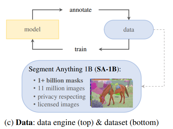 - segmentation 분야에서 추후 진행될 연구에 신뢰성을 줄 수 있는 데이터셋(SA-1B)을 구축했습니다.
