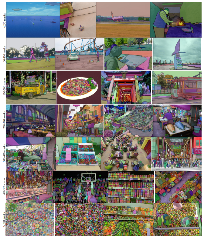 약 1100만 여개의 이미지에서 약 10억 개 이상의 마스크를 사용했습니다.